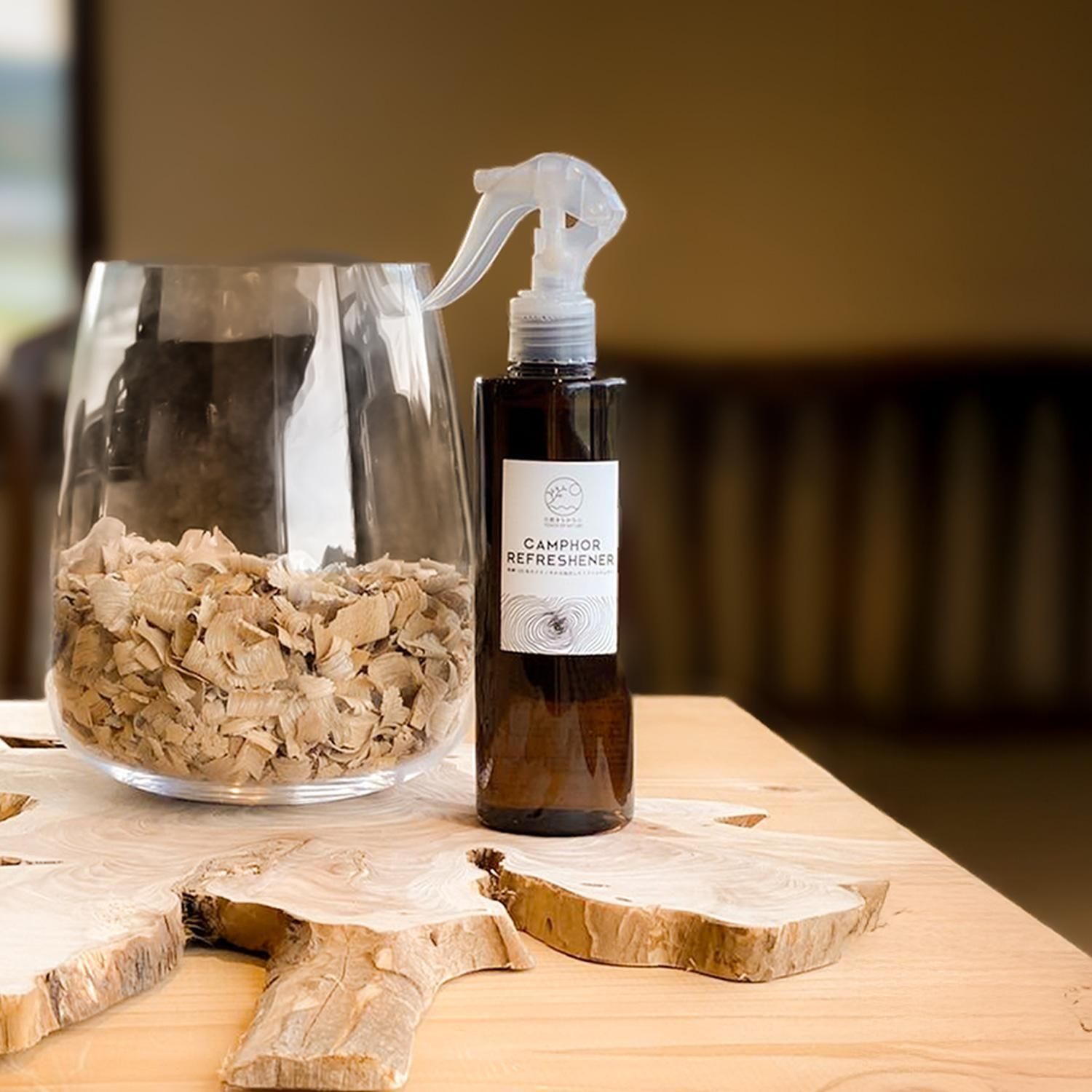 空間やファブリックの気になる匂いにシュッとひと吹きするとクスノキの爽やかな香りが広がり、クスノキの持つ消臭効果でおうちの嫌な匂いもスッキリ。